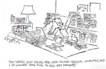 In our last blog, I stunned myself and maybe most of the readers of this blog- we have over 1,500,000 medical related publications issued annually in the world. It is impossible for anyone to keep up. I would not be surprised if at large teaching and research medical centers like Jackson Memorial Hospital (Miami, Florida) the largest single hospital facility in the U.S. with 1,500 beds, there is published research that is not known by most of the doctor serving there.